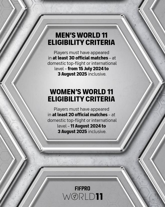 FIFPRO(国际职业足球运动员联合会)官方写道:“一些球星因上赛季出场次数不足,无缘入选2025年FIFPRO世界最佳11人阵容,令人惋惜。”